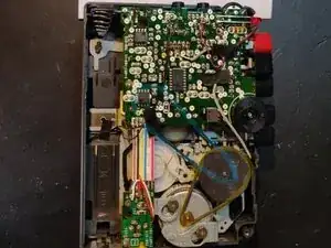 В моем случае длинный ремень был сломан (отсутствует на изображении), короткий ремень все еще находился на капстане/шпинделе, как видно на изображении, но также нуждался в замене из-за износа.