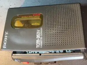 Инструкция по замене двух ремней в кассетном магнитофоне Sony TCM-353V.