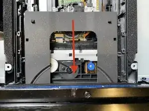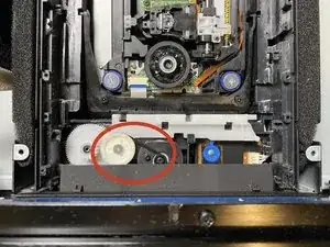Работу нового ремня можно проверить после установки панели стабилизации диска. Также настоятельно рекомендуется установить крышку механизма подачи или положить её сверху, чтобы закрыть лазер.