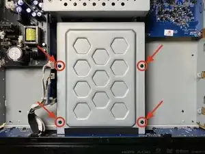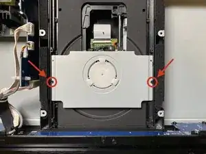 Открутите два маленьких винта Phillips, крепящих верхнюю панель стабилизатора диска.