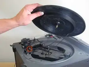 Отделите вращающуюся платформу от верхней части проигрывателя, поднимая её вертикально вверх.