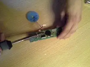 Если напряжение ниже примерно 2,75 вольт, батарею следует удалить. Используя паяльник, расплавьте припой, удерживающий одну из монтажных лапок на плате. Пока припой жидкий, оттяните монтажную лапку пинцетом.