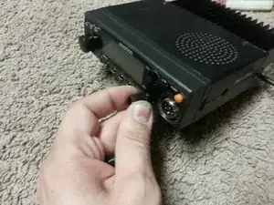 Отвинтите разъём микрофона от передней панели радиостанции и вытащите его.