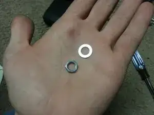 За гайкой находится маленькая шайба. Обязательно снимите её и отложите вместе с гайкой, чтобы не потерять.