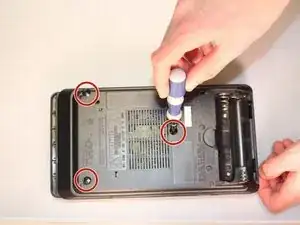 Удалите три винта Phillips #0 M5-0.8 x 12 мм с задней части корпуса устройства.