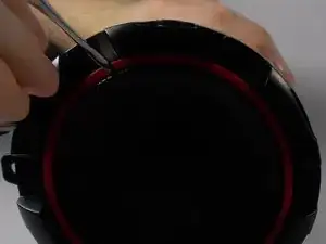 Используйте металлическую лопатку, чтобы снять сетку динамика, вставив узкий конец в центр внешнего края сетки, прикасающегося к красной панели.