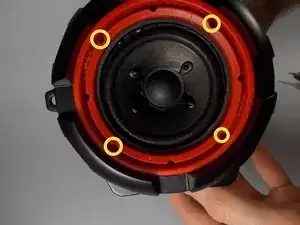 Посмотрите на боковую сторону динамика без красной интерфейсной панели; вокруг сетки будет красное кольцо, но на боковой стороне не будет кнопок.