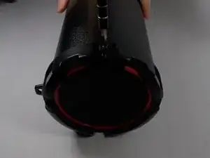 Отделите красную панель от черной лицевой панели, сняв черную панель с трубы и надавив на внутреннюю часть сабвуфера.