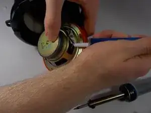 Чтобы отсоединить провода от терминалов сабвуфера, используйте паяльник, чтобы снова нагреть припой в каждой из четырех точек соединения.