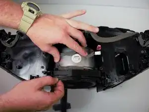 Существует небольшой ленточный кабель, соединяющий сборку дисплея с корпусом устройства. Обязательно отключите кабель перед тем, как полностью снять решётку, иначе кабель может оборваться.