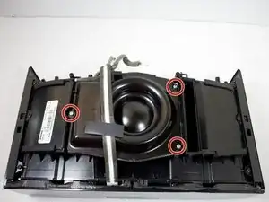 Удалите три винта PH2 длиной 19 мм, удерживающих металлическую крышку сабвуфера.