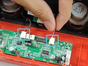 Отключите два разъёма сабвуфера от основной печатной платы.