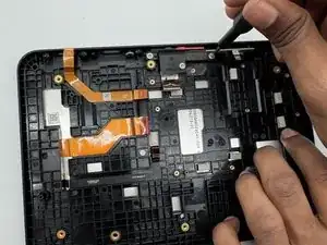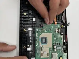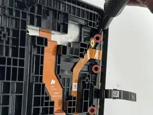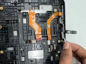 Используйте изогнутые пинцеты, чтобы отсоединить все ленточные кабели от их разъёмов на плате.