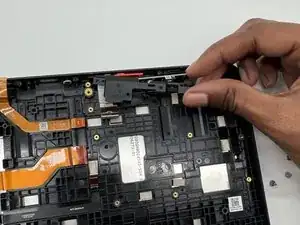 Аккуратно наклоните сборку динамика в сторону ленточного кабеля.