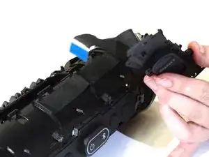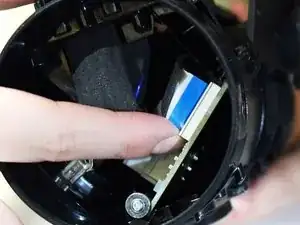 Захватите разъём зарядки двумя пальцами и аккуратно отсоедините синий и чёрный ленточный кабель без фиксатора от платы.