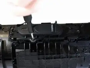Используйте отвёртку с крестообразным наконечником №0, чтобы выкрутить четыре винта длиной 10,6 мм, крепящих крышку разъёма зарядки.