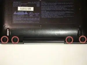 Используйте отвертку Phillips #00, чтобы снять семь черных винтов 5.8 мм.