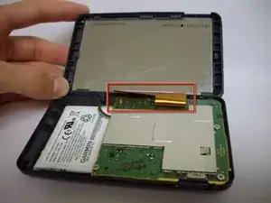 Открывайте устройство осторожно, чтобы не повредить золотую ленту, соединяющую экран с материнской платой.