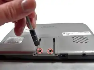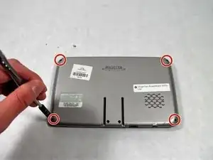 Открутите четыре винта в верхнем левом углу с помощью отвёртки Phillips #0.