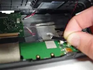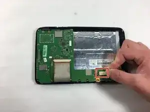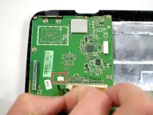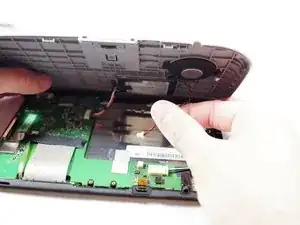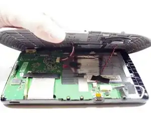 Если поднимать заднюю панель слишком быстро или резко, можно повредить кабель динамика и кабель аккумулятора, которые пока всё ещё подключены.