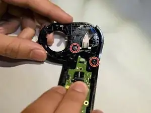 С помощью отвертки Phillips #00 выверните четыре винта 4 мм, расположенные на плате джойстика под верхней половиной контроллера.
