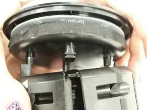 Снимите решётку колонки, зафиксировав колонку на столе и надавив на дно колонки. Сдвиньте решётку вверх и отведите её от оставшейся заглушки.