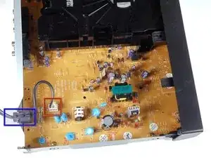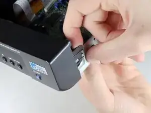 Найдите белый зажим, который соединяет шнур с материнской платой.
