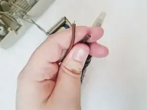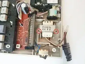 С помощью отвертки PH1 снимите два винта 10 мм, которые удерживают трансформатор.