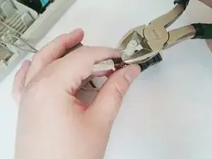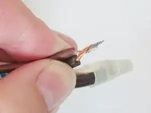 Используйте кусачки, чтобы отрезать белый колпачок и обнажить провода. Постарайтесь отрезать близко к кончику белого колпачка, чтобы оставить как можно больше провода.