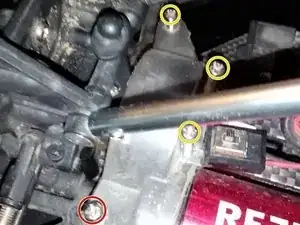 Если имеется дополнительная защита главной шестерни и шестерни двигателя (не серийное состояние), её нужно сначала снять. Для этого все отмеченные винты необходимо выкрутить отверткой PH1. Это два разных винта.