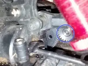 Чтобы ослабить пиньон, нужно отвинтить установочный винт, фиксирующий его на выходном валу мотора. Для этого нужен 1,5 мм шестигранник.