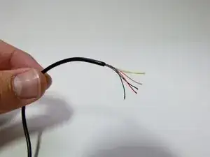 На фотографиях показан синий провод и несколько жёлтых нитей. Синий провод был припаян вместе с землёй, а жёлтые оказались не проводами, а нейлоном.