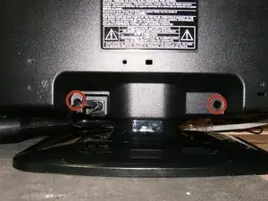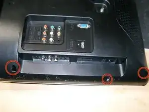 Так будут видны четыре винта крестообразного типа, которые крепят подставку к телевизору.