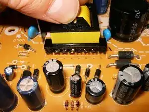 Поверните плату стороной с компонентами вверх и извлеките трансформатор.