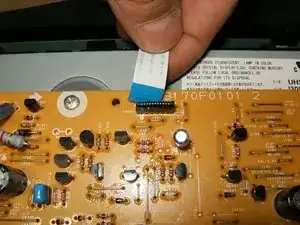 Отсоедините верхний плоский ленточный кабель. Он фиксируется простым защёлкиванием и просто вынимается.