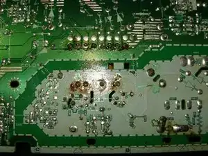 Убедитесь, что все соединения запаяны, и случайно не образовался перемычек из припоя. Если всё выглядит удовлетворительно, соберите телевизор в обратном порядке.