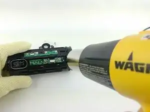 Для выполнения этого руководства потребуется использовать термофен в области батареи, питающей устройство, поэтому установите его на низкий режим и используйте огнеупорные перчатки.
