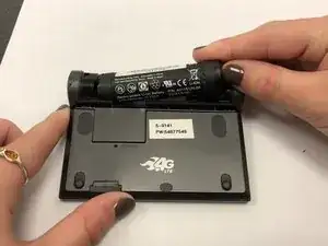 Осторожно поместите большой палец на правую сторону батареи, как показано.