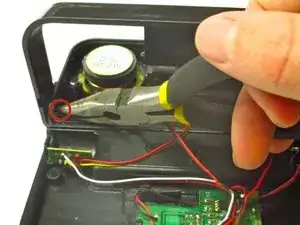 С помощью тонкогубцев сожмите конец подставки к боковой части корпуса динамика.