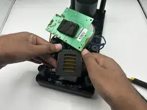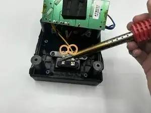 Распаяйте соединения на чёрном и жёлтом проводах, удерживающих твитер на месте.