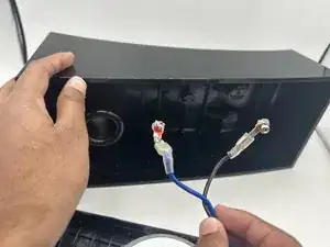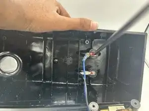 Отсоедините оба провода, которые соединяют заднюю панель с компонентами колонки, чтобы получить полный доступ к внутренним элементам.