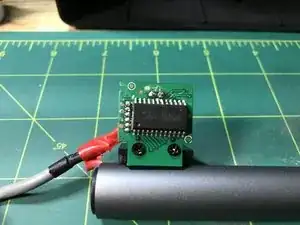 Выньте мягкую резину из корпуса, который удерживает светодиод. Одной из отвёрток протолкните светодиод через тёмный пластиковый корпус и резину, чтобы открыть доступ к светодиоду. Выпаяйте положительный и отрицательный провода светодиода с платы.
