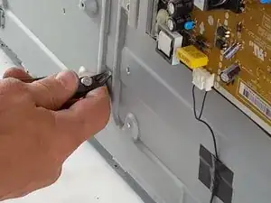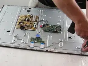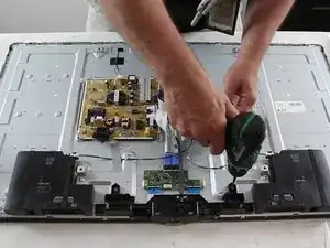 Удалите винты, удерживающие узел по периметру телевизора.