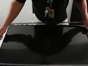 Снимите панель с телевизора, поднимая её равномерно, чтобы не повредить.