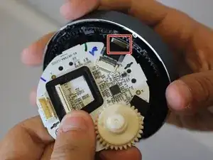 Возьмитесь за более крупный кабель, подключенный к светодиодной плате, и потяните колесико громкости, пока оба не будут отключены от кабеля.