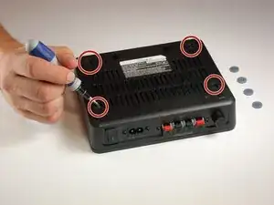 Снимите 4 резиновые вкладки с нижней стороны приемника.