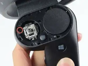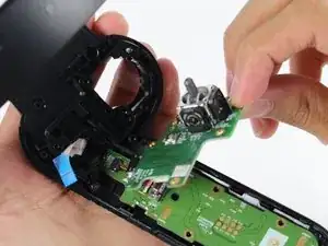 Удерживайте джойстик вниз левым большим пальцем, чтобы освободить место для пластикового инструмента.