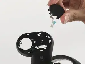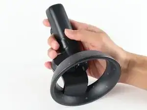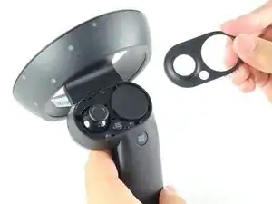 Сожмите чёрное кольцо на верхней части контроллера и потяните к себе, чтобы отсоединить его.