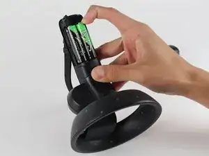 Извлеките правую батарейку, нажав на положительный конец вниз и потянув батарейку к себе.