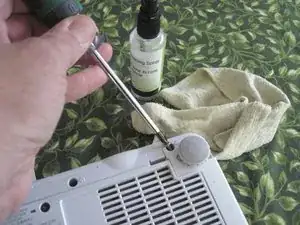 В панели доступа к лампе имеется поролоновый воздушный фильтр, который легко очистить. Он также легко рвётся, поэтому будьте осторожны: извлеките поролон из панели доступа. Можно аккуратно пропылесосить грязь пылесосом, продуть сжатым воздухом или даже промыть водой и высушить. Просто не рвите его. Установите фильтр обратно и закройте крышку.